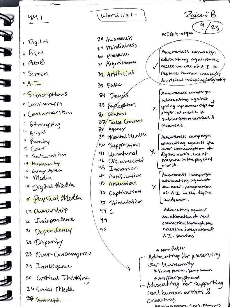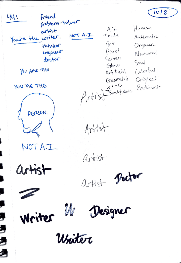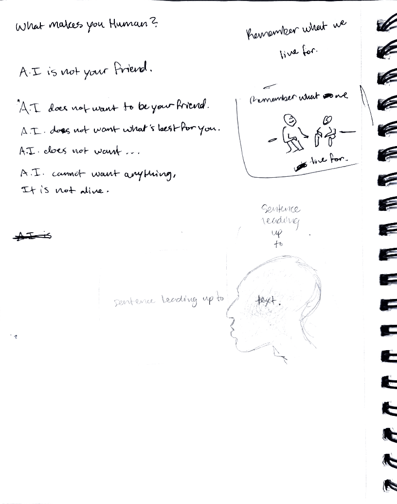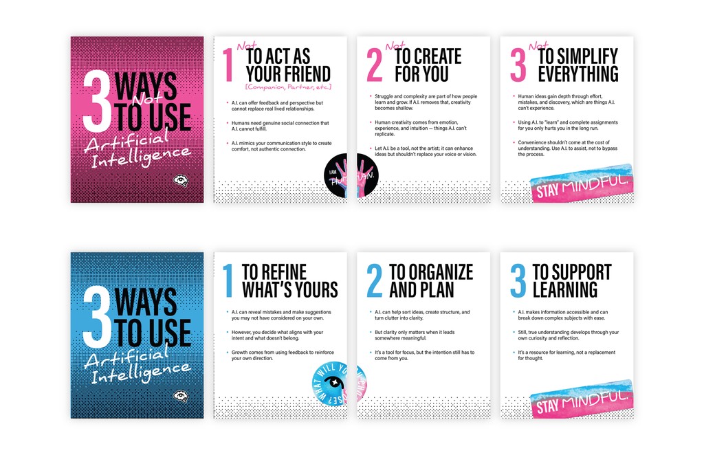 I decided to develop an awareness campaign as a part of the "National Institute of A.I. Awareness" with the goal of highlighting the humanistic qualities in our work and in our lives that artificial intelligence *cannot* express for us. This is not an anti-A.I. campaign, but rather a way to encourage viewers to consider how and how much they utilize artificial intelligence, and to empower people to take back ownership of the qualities that make them human.