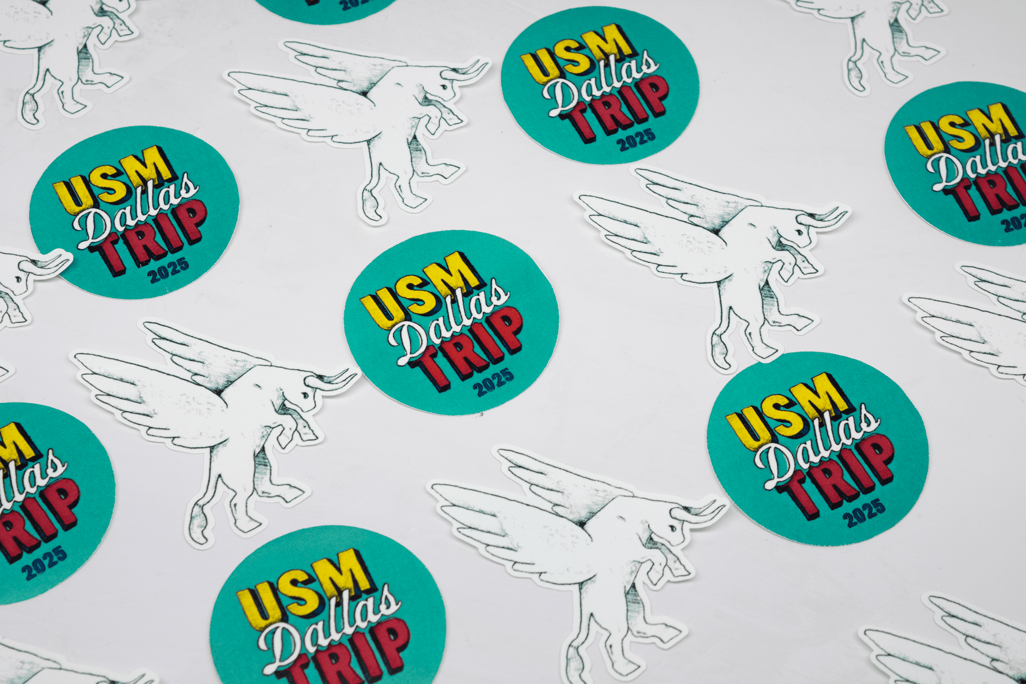 I designed a simple logo system, featuring hand illustrated and bit-mapped type and a winged-bull mascot character, inspired by Dallas' association with bulls and cowboy culture, as well as the well known "Flying Red Horse" atop Dallas' Magnolia Building. The hand-drawn quality along with the bold, punchy colors was used to catch the eye, introduce an organic edge/texture, and call back to the personality Dallas expresses.